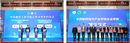 11月7日,第四屆團泊湖中醫藥現代化論壇——綠色智能制造分論壇暨中藥制藥工程學院成立十周年學術交流活動在天津中醫藥大學舉行。蘇中藥業集團董事長唐仁茂受邀出席本次盛會。會議期間,集團公司董事長唐仁茂受聘為“天津中醫藥大學中藥制藥現代產業學院”企業導師,中國工程院院士、天津中醫藥大學名譽校長張伯禮頒發聘書。蘇中藥業集團與天津中醫藥大學中藥制藥工程學院簽訂戰略合作協議,建立“天中-蘇中”現代中藥聯合創新研究中心。